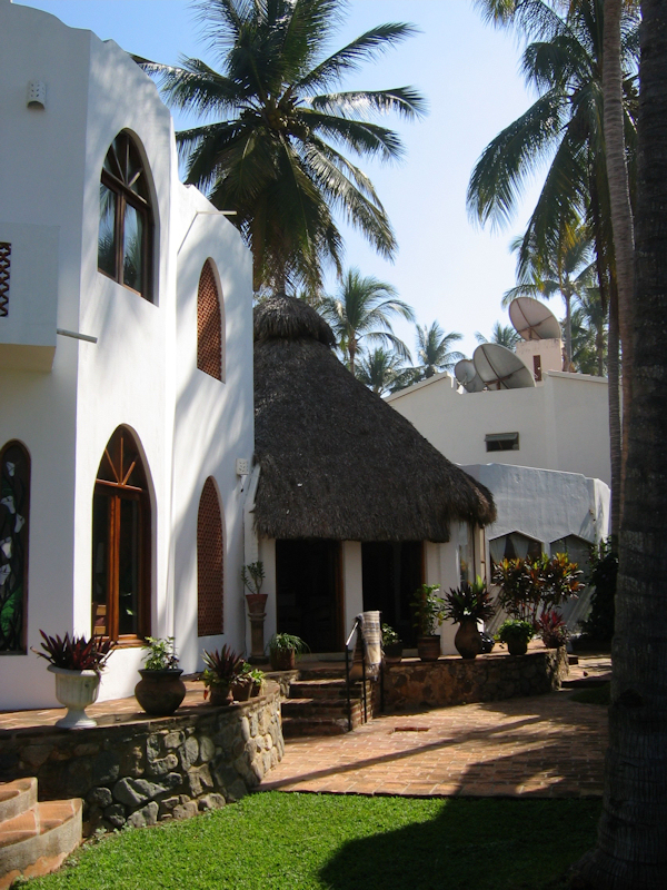Casa Lorenzo, located on the north end of the beach from San Pancho, was the 2nd home built on the beach in the early 1980’s. It is a 2 bedroom retreat with accommodations for 7 people, and has sweeping views of the Pacific ocean and San Pancho’s wide and beautiful beach. The Casa’s unusual architecture beckons the more adventurous of guests…those not looking for luxurious accommodations or more modern designs. It offers a place where one hangs a hammock, relaxes and retreats to tranquil spaces beyond the fast lanes of life.