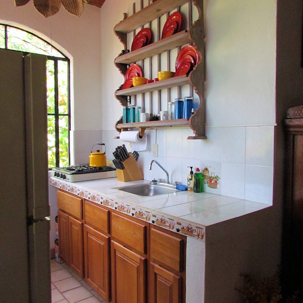 Casa Amistad has a kitchen that is equipped with a modestly-sized refrigerator, counter-top range and electric oven, and a microwave. All utensils, dinnerware, and glassware are included.